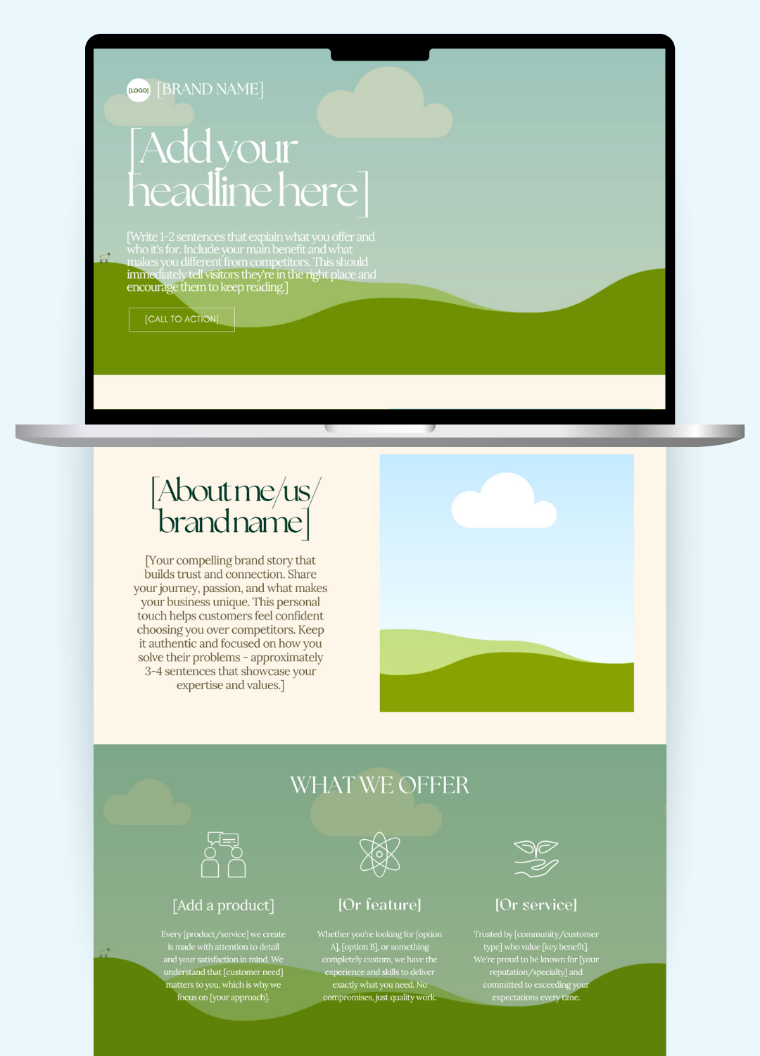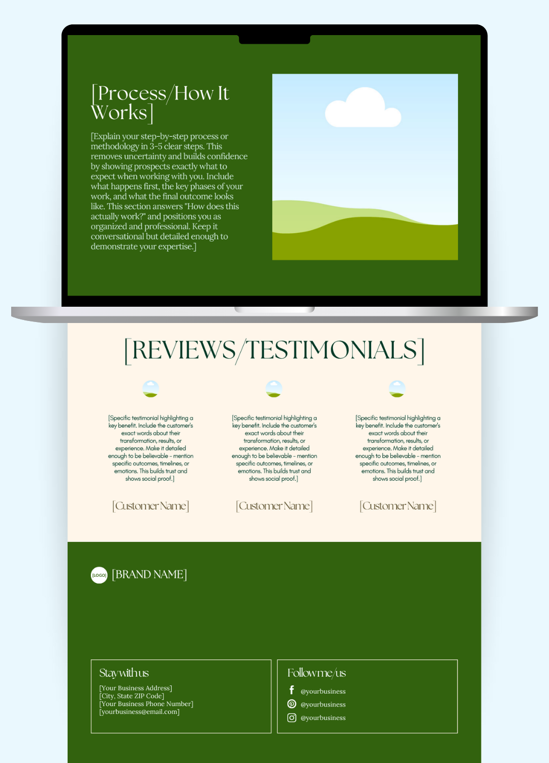 ✨ Your complete website set up in Canva (all 9 sections personalized with your content, colors, images)